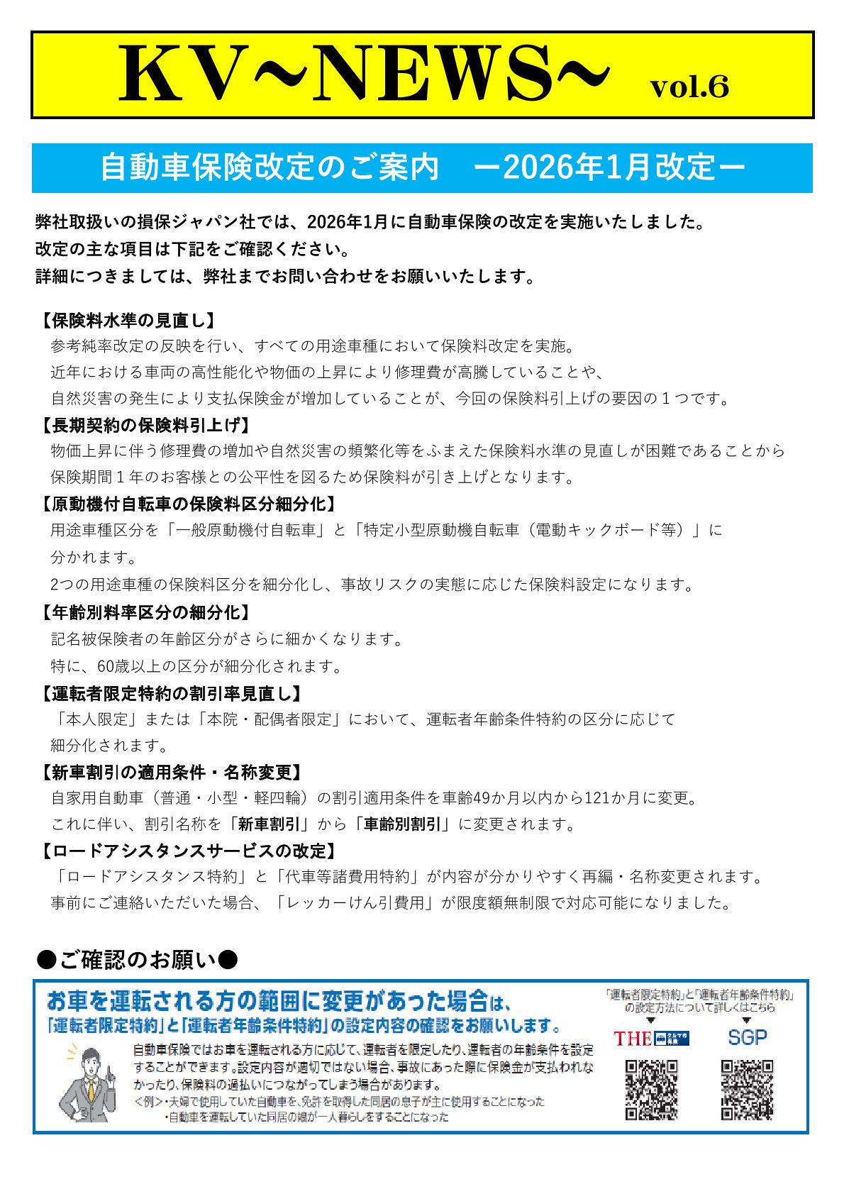 2026年1月 自動車保険料改定のご案内